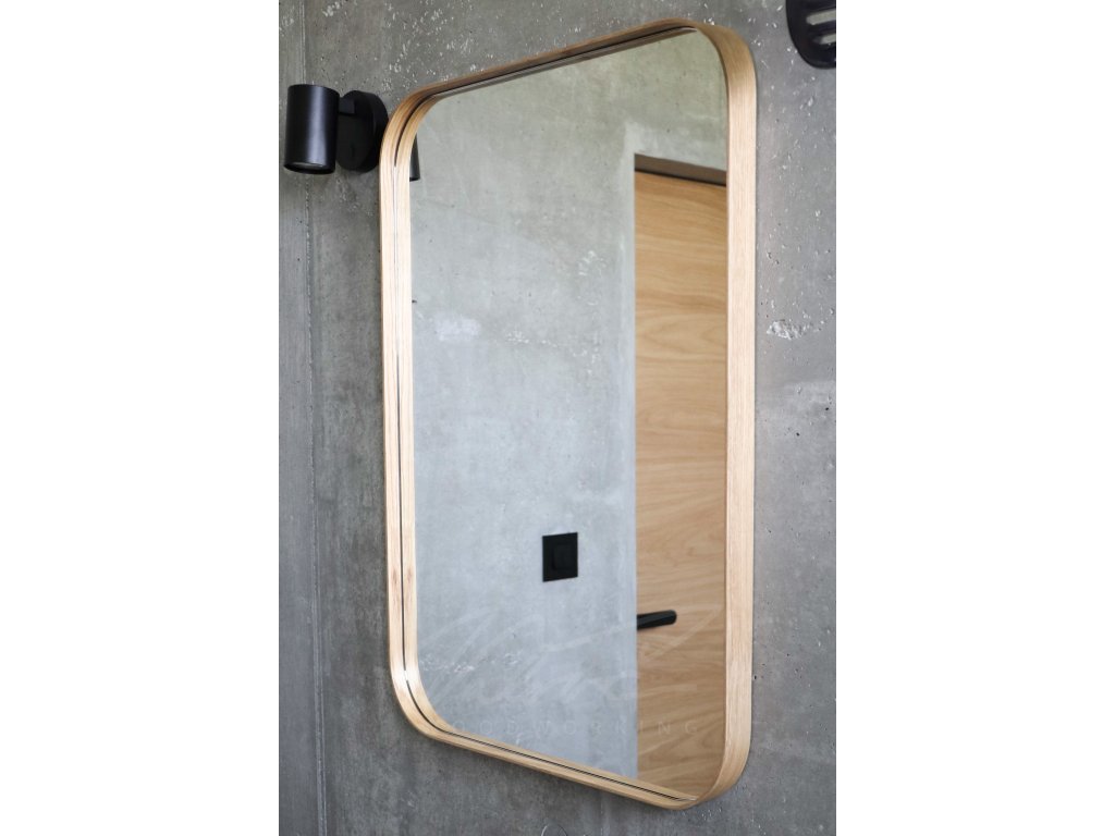 Zrkadlo v drevenom ráme so zaoblenými rohmi. Hodí do každej kúpeľne či napríklad nad stolík na líčenie. Tento súčasný trendy tvar určite odporúčame skombinovať s LED podsvietením a vynikne aj kúpeľniach s dvomi umývadlami a zrkadlami.